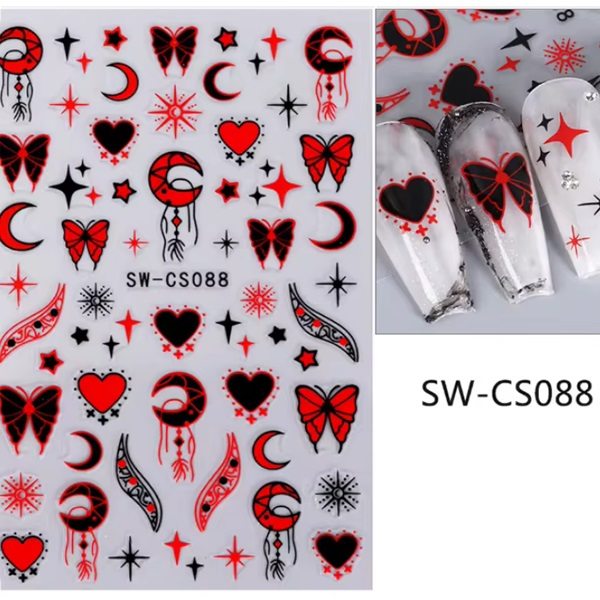 3D Nail Sticker - Schmetterlinge schwarz - rot SW-GS088