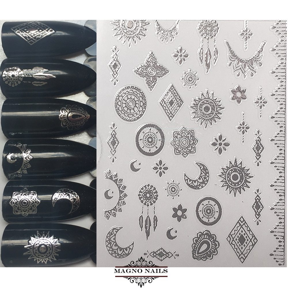 3D Metallic Nail Sticker - silber Ornamente