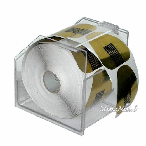 Dieser Schablonenhalter passt für eine extra breite Schablonenrolle bis zu 500 Stück. Er ermöglicht einfaches entnehmen der Schablonen. Maße ca. 9cmx 12cm x 12,5cm