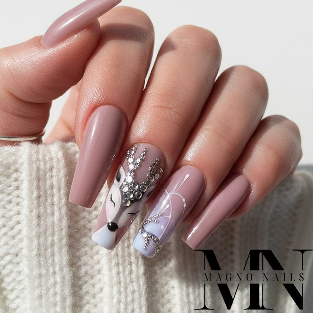 Winternägel - mit einem Reh Rudolf Luxus Nägel